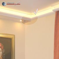 Optimierung der indirekten Beleuchtung: Die LED Reflektorleiste verhindert, dass das Licht der LEDs durch das Stuckprofil der Styroporleiste durchscheint. Dadurch kommt das Zierprofil auch bei eingeschalteter indirekter Beleuchtung optimal zur Geltung und Sie werden viel Freude mit Ihrer indirekten Beleuchtung haben.