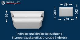 Endstück mit und ohne Lüftungsgitter: Mit den Endstücken können Sie die U-förmige Lichtleiste Essen 270+2x202 zeitsparend und professionell abschließen. Die Endstücke sorgen für einen gediegenen, formvollendeten Abschluss der U-förmigen Styroporleisten.