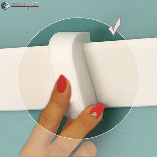 Profil Negativ: Das Profil Negativ ist das Negativprofil zum Stuckprofil - in diesem Falle das Negativprofil der Stuckleiste für indirekte Beleuchtung Fulda 212 Plexi Plus. Damit können Sie im wahrsten Sinne des Wortes den überschüssigen Kleber im Handumdrehen von den Stößen entfernen, ohne hinterher das Stuckmuster wieder mühsam mit einem Spachtel herausarbeiten zu müssen.