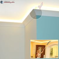 Optimierung der indirekten Beleuchtung: Die LED Reflektorleiste verhindert, dass das Licht der LEDs durch das Stuckprofil der Styroporleiste durchscheint. Dadurch kommt das Zierprofil auch bei eingeschalteter indirekter Beleuchtung optimal zur Geltung und Sie werden viel Freude mit Ihrer indirekten Beleuchtung haben.