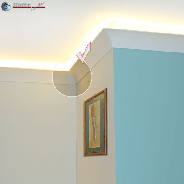 In die Wandleiste Sölden 213 können LED Streifen eingelegt werden, auf diese Weise erhalten Sie eine indirekte Beleuchtung. Die Wandleiste besteht aus Polystyrol Hartschaum (XPS).