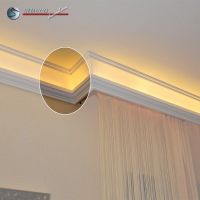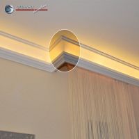 Mit dieser neu entwickelten Stuckleiste für indirekte Beleuchtung Hamburg 203 lassen sich jetzt auch einfach Wohnideen mit indirekter Beleuchtung in der Küche oder im Bad verwirklichen. Bis jetzt schreckten viele davor zurück, indirekte Beleuchtung in der Küche zu verwirklichen, weil sich allerfeinste Fetttröpfchen erfahrungsgemäß überall in der Küche absetzen. Und wie bekommt man die von den LEDs ohne die Elektrik zu beschädigen? Das war bis jetzt ein sehr berechtigter Grund, sich nur in ausgewählten Räumen für indirekte Beleuchtung zu entscheiden. - Bis jetzt! Doch hier ist die Lösung für Sie: