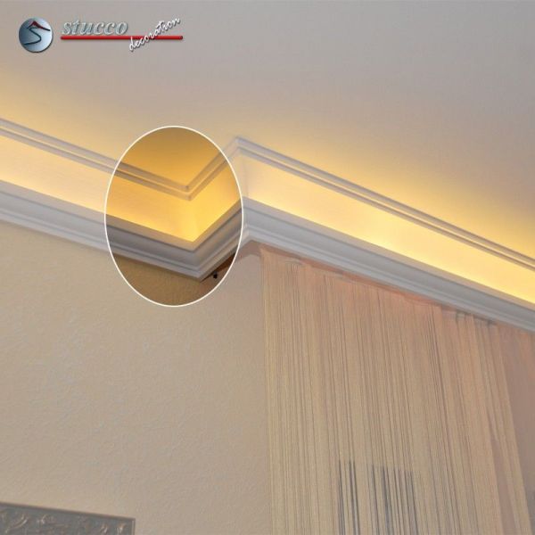 Jetzt sind die Vorhangleisten und Stuckleisten Hamburg 203 bereit für den Einbau der LED Strips.