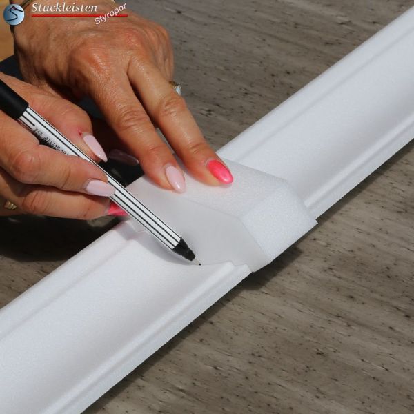 Zur Deckenleiste Bayern 10 bieten wir natürlich auch vorgefertigte Ergänzungselemente an, die den Einbau deutlich erleichtern. Passend zu dieser Deckenleiste finden Sie in unserem Sortiment folgende Ergänzungselemente: Innenecke, Außenecke, Markierschablone und Profil Negativ.