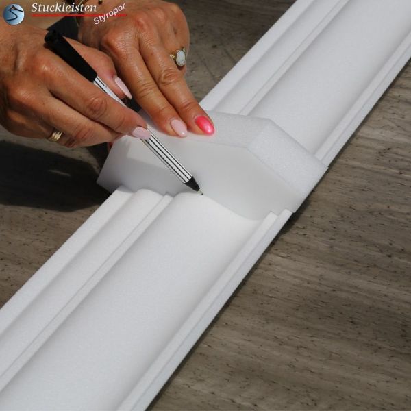 Zur Deckenleiste Düren 21 bieten wir natürlich auch vorgefertigte Ergänzungselemente an, die den Einbau deutlich erleichtern. Passend zu dieser Deckenleiste finden Sie in unserem Sortiment folgende Ergänzungselemente: Innenecke, Außenecke, Markierschablone und Profil Negativ.