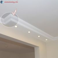 Das Stuckprofil Trier 270+2x14 ist ein U-Profil, das den Ausbau der direkten Deckenbeleuchtung mit LED Spots ermöglicht. Die Grundplatte des Profils ist 270 mm breit. Die Grundplatte verziert an beiden Längsseiten das Zierprofil Trier 14. Dieses Stuckprofil bietet eine schöne und praktische Möglichkeit für die Beleuchtung eines Esstisches oder einer Frühstückstheke in der Küche. In dem folgenden Video sehen Sie den Ausbau der Deckenbeleuchtung mit dem Stuckprofil Trier 400+2x14 und LED Spots. Das Stuckprofil Trier 270+2x14 wird genauso eingebaut.