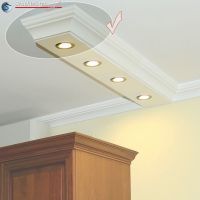 Das Stuckprofil Trier 270+14 ist ein L-Profil, das den Einbau von LED Spots entlang der Wand ermöglicht. Eine Wandbeleuchtung mit Styroporleisten und LEDs ist eine hervorragende Lösung zur Beleuchtung eines Schreibtischs oder der Arbeitsfläche in der Küche.