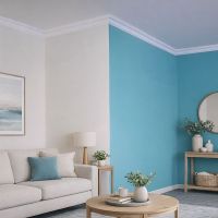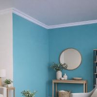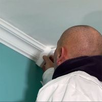 Zum Abschluß müssen die Fugen zwischen der Stuckleiste und der Decke sowie die Fugen zwischen der Wand und der Stuckleiste geschlossen werden. Dies geht einfach, indem etwas Kleber mit Hilfe der Kartuschenpresse auf die Fugen aufgebracht wird. Der Kleber lässt sich mit einem nassen Schwamm oder der angefeuchteten Fingerspitze glätten und verteilen. Wenn alle Stuckarbeiten abgeschlossen sind, brauchen Sie den Styroporstuck nur noch mit einer umweltfreundlichen Farbe auf Wasserbasis (sogenannter Dispersionsfarbe) zu streichen. Dadurch erhalten die Zierleisten und die Stöße ein einheitliches Aussehen und Ihr Stuck aus Styropor wirkt wie aus einem Guss.