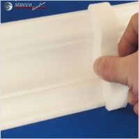 Die Stuckleiste zur Verkleidung der Gardinenschiene wird vor die Gardinenführungen an die Decke montiert. Stuckleisten zur Verkleidung der Gardinenleiste sind mit der Länge 2,0 m erhältlich. Je nach Bedarf kann die Styropor Vorhangleiste auch gekürzt werden.