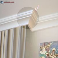 Die Vorhangleiste aus Styropor wird vor der Gardinenschiene an der Decke befestigt. Unsere Vorhangleisten sind 2 Meter lang, sie können mit einer Feinsäge auf Wunsch gekürzt werden.