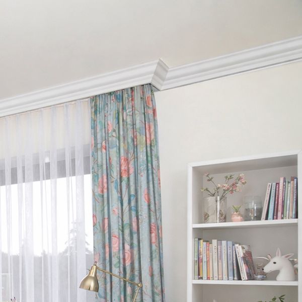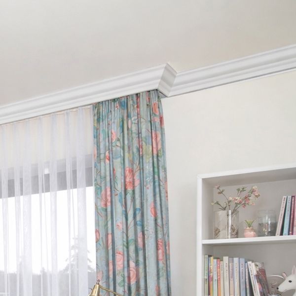 Die Vorhangleiste aus Styropor wird vor der Gardinenschiene an der Decke befestigt. Unsere Vorhangleisten sind 2 Meter lang, sie können mit einer Feinsäge auf Wunsch gekürzt werden.