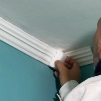 Zuerst sollen die vorgefertigten Innenecken und Außenecken der Stuckleisten montiert werden.
