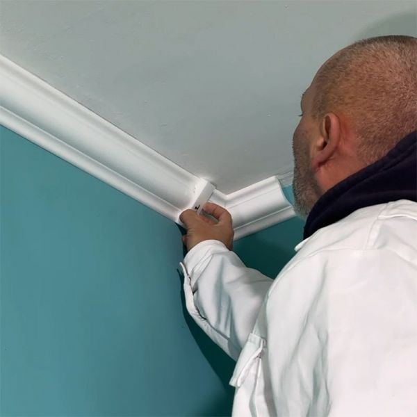 6. Verkleben der Stuckleisten aus Styropor