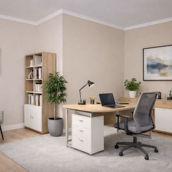 Heutzutage arbeiten immer mehr Menschen im Homeoffice, daher ist es besonders wichtig, eine anspruchsvolle und angenehme Arbeitsumgebung zu schaffen. Wenn wir uns wohlfühlen, können wir effizienter und motivierter arbeiten. Auch ein kleineres Gästezimmer oder ein begehbarer Kleiderschrank lässt sich problemlos in ein praktisches Homeoffice oder Büro umwandeln. Neben der passenden Wandfarbe und den richtigen Möbeln sollten auch Stuckelemente nicht vergessen werden: Die Stuckleiste Oslo 22 verleiht dem Raum mit ihrer schlichten Linienführung ein geschmackvolles und klares Erscheinungsbild.